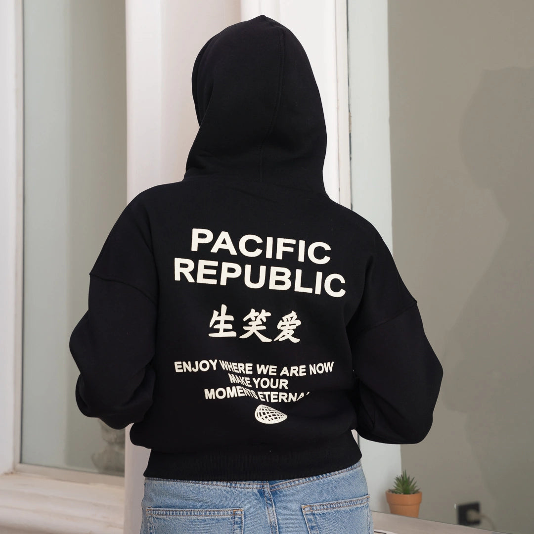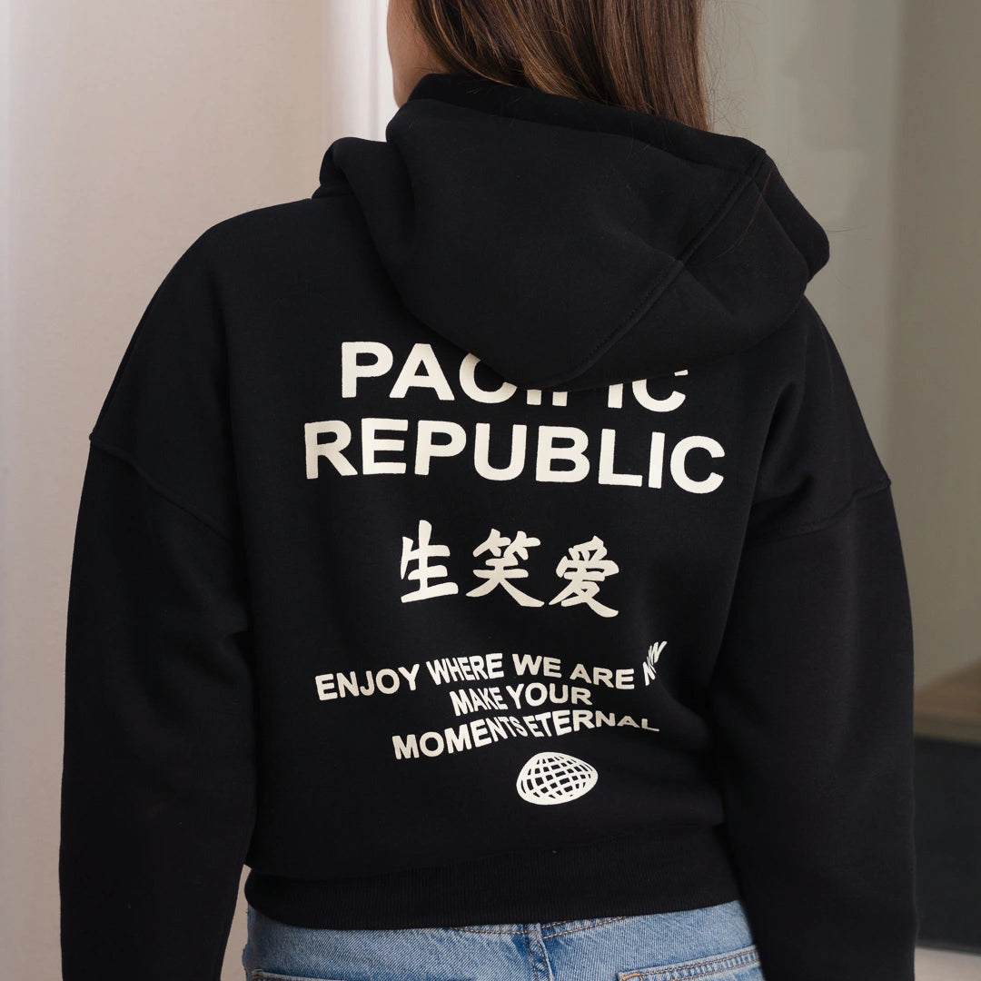 Short cotton hoodie-Black